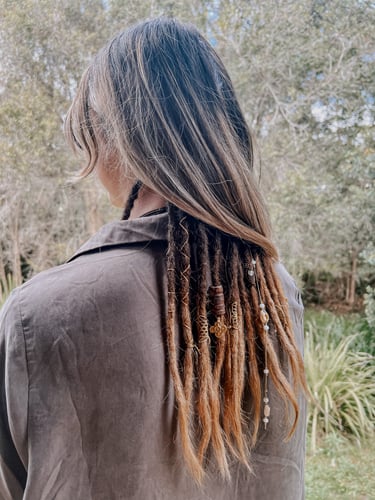 Human hair extensions mature like your natural dreadlock (can shrink), can be coloured with hair dye, requires more maintenance (compared to synthetic) and is more expensive than synthetic hair.